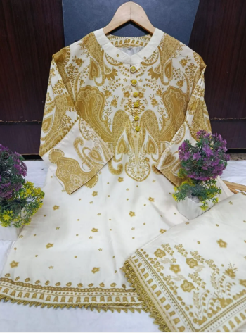 2 Pcs Women's Stitched Swiss Lawn Printed Shirt And Trouser